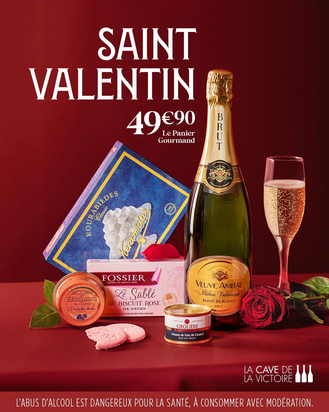 champagne, une terrine, un foie gras, une confiture, un gâteau…